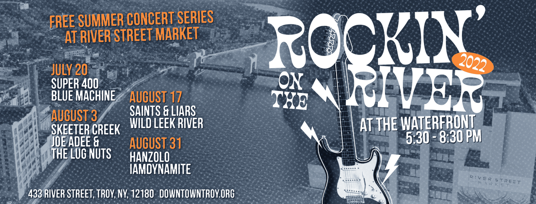 “The Waterfront is the place to be on Wednesday nights this summer,” said Maria Decker, Manager, River Street Market. “We’re thrilled to host Rockin’ On The River outside our space on the banks of the Hudson and showcase the great music, food, drink, and more that you can only experience in downtown Troy.”